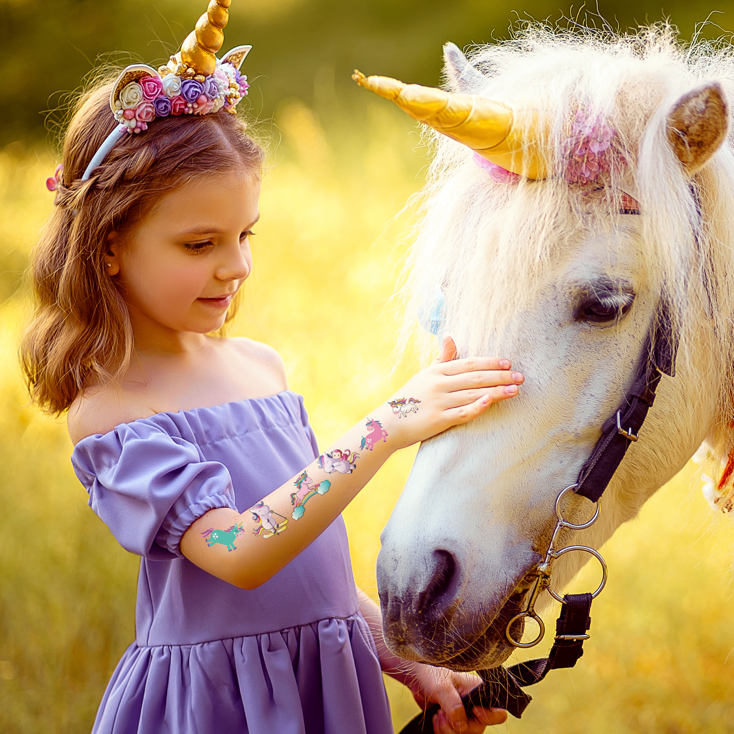 150 hautschonende Kindertattoos – Thema: Einhorn Magie – 9 Tattoobögen im A6-Format – made in Germany